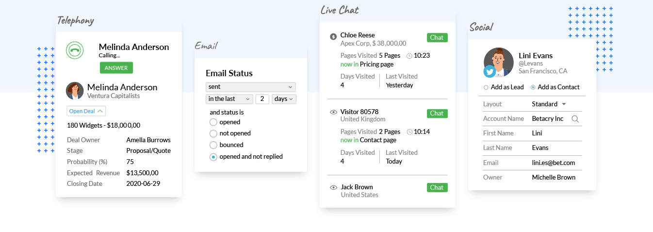 Bad decisions come from bad data. Today, customers can come from websites, social media, phone calls, etc. and you need a multi-channel communication system that lets you cover all customer touchpoints that are relevant to your selling process.