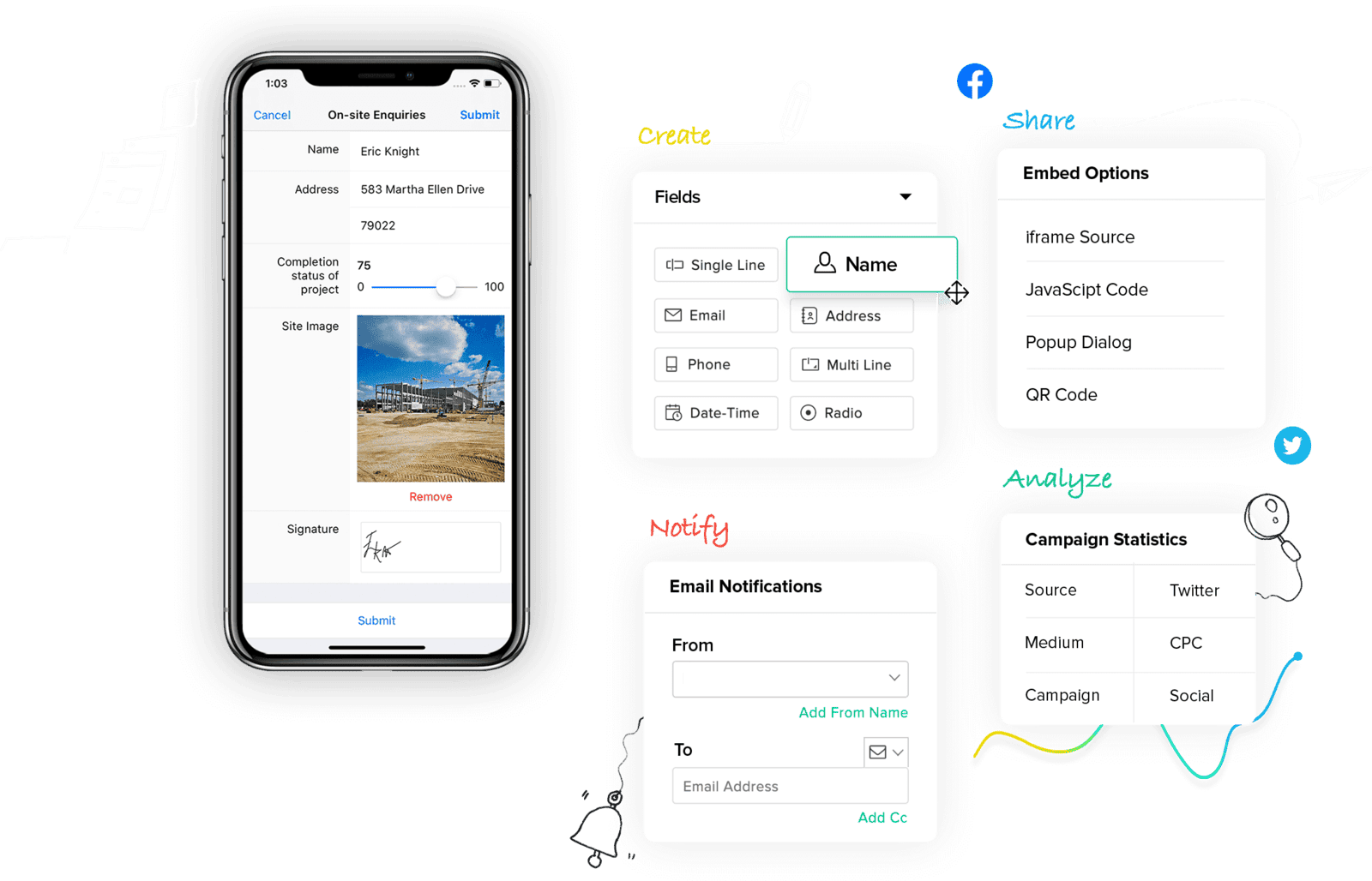 Create forms, share them online, receive instant alerts, and efficiently manage your data with Zoho integrated apps. Take a deep breath and focus on your business while Zoho Forms handles it all for you!
